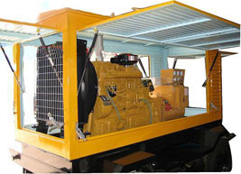 千山柴油发电机组/移动柴油发电机组设计独具创新,机动性高、重心低、制动安全、制造精良、外形美观。 千山拖车车架采用槽梁焊接成框架结构,节点选择合理、强度高、刚性好;同时装有钢板弹簧悬架结构;拖车采用高度可调节插销式牵引架,适用于各种高度牵引车;采用圆形钢管焊接直通式车轴,结构紧凑,安全可靠;车架四角设有机械式支撑装置,配备惯性行车制动、驻车制动和脱离应急制动,确保机组在各种状况下的安全;车架前端设有支撑轮,具备承受机组垂直载荷的功能的同时还具备导向功能;整车配备转向和刹车指示灯,同时装有尾灯标准插头